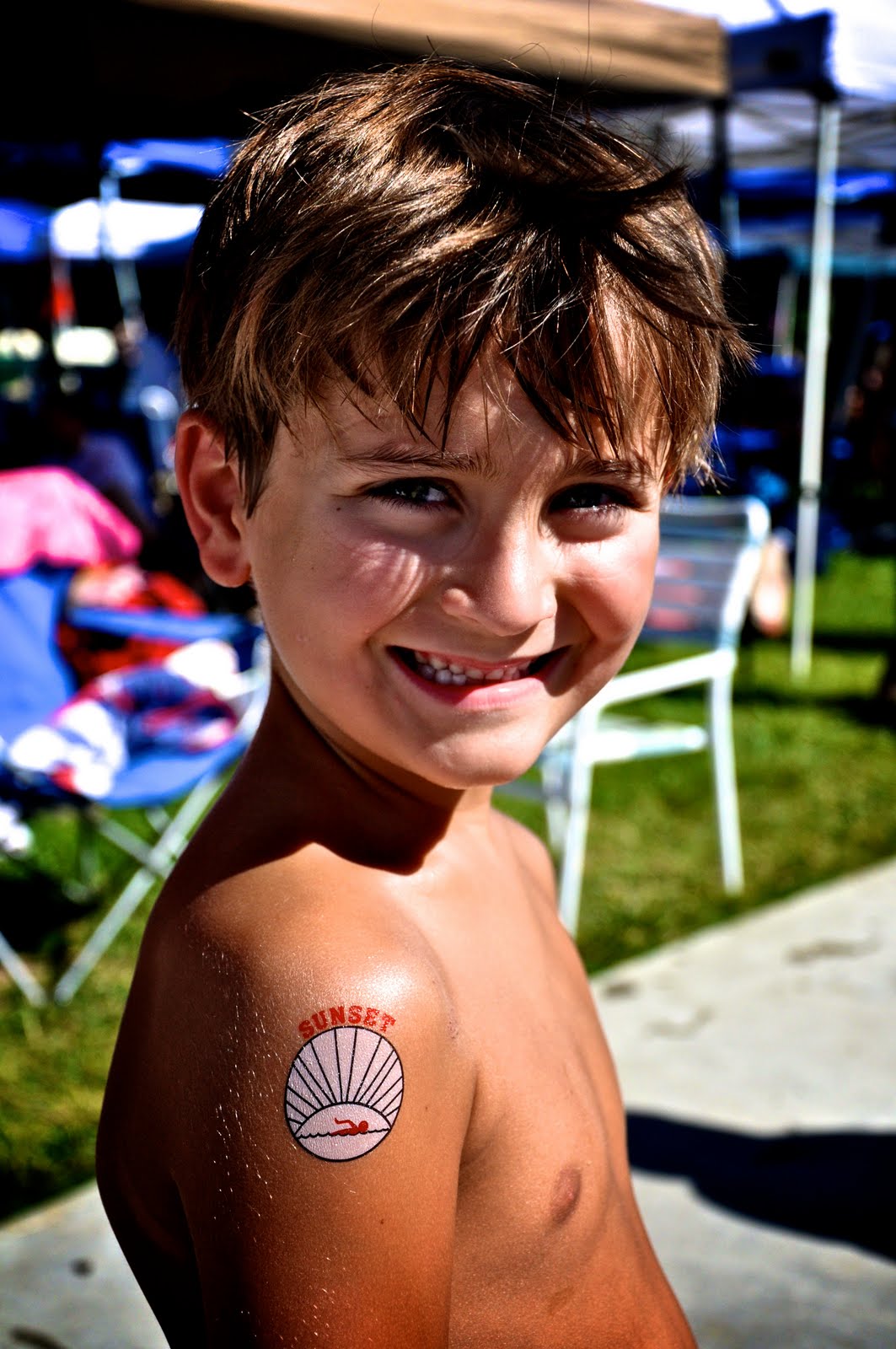 Last week Vince and I went to watch his 6 year old nephew, Noah, swim. It's his first year on a swim team and he did great!! He got an award for most improved. He started the swimming season off with not wanting to get in the pool, to using a kick board, to coming in first in the free style that we got to see him compete in!! He also got to swim in the Championships a few days after these pictures were taken! Way to go, Noah!!
